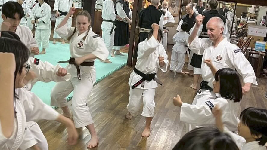 Mijn reis naar Japan voor een examen voor de 4e dan en de WSKO Study Session 2025. Hierboven zie je beelden van Marugame daarna Hombu, het hoofdkwartier van Shorinji Kempo, de trein naar Kyoto en daar met de fiets langs parken, tempels en Rakuto Doin van Kazuhito Morikawa sensei, om na een waardig afscheid van enkele kenshi en sensei’s met uitzicht op de Fuji weer naar huis te vliegen.